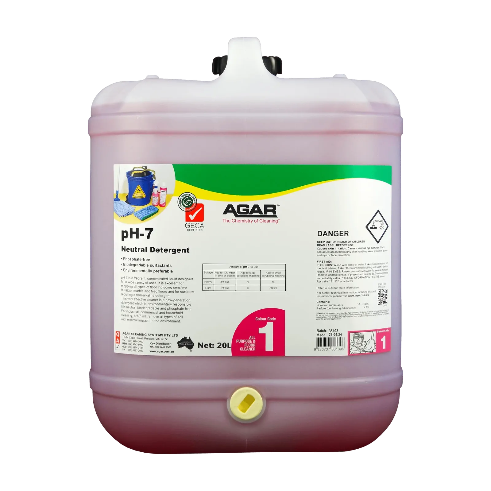 pH-7 is a neutral detergent that has a multitude of applications for cleaning hard surfaces. pH-7 has been specially formulated to be environmentally preferable.