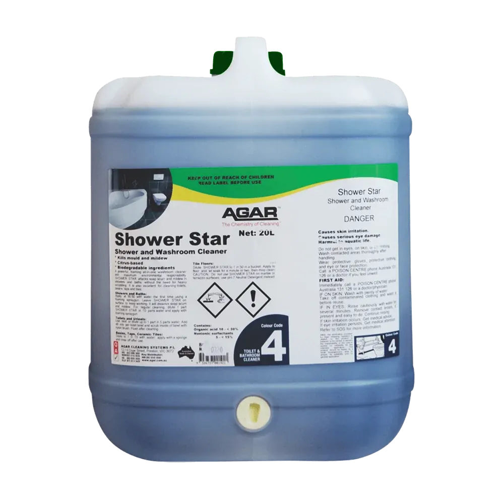 Shower Star is a powerful, foaming, all-in-one washroom cleaner which attacks and removes all kinds of bathroom scum.