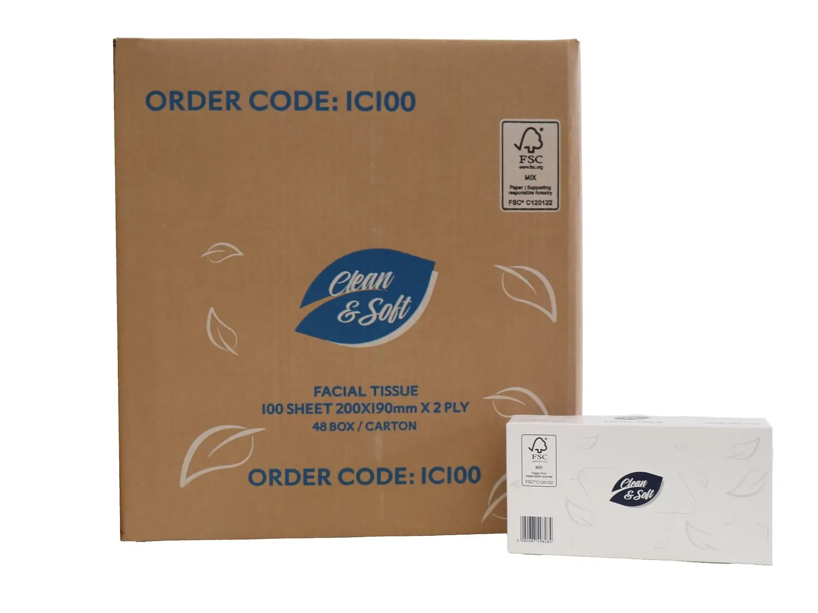 CLEAN & SOFT Tissues 100 x2 ply 48 Boxes