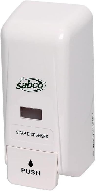 SABCO PLastic Soap Dispenser 1000ml capacity white commercial grade convenient design 12.3 x 12.3 x 27.5cm